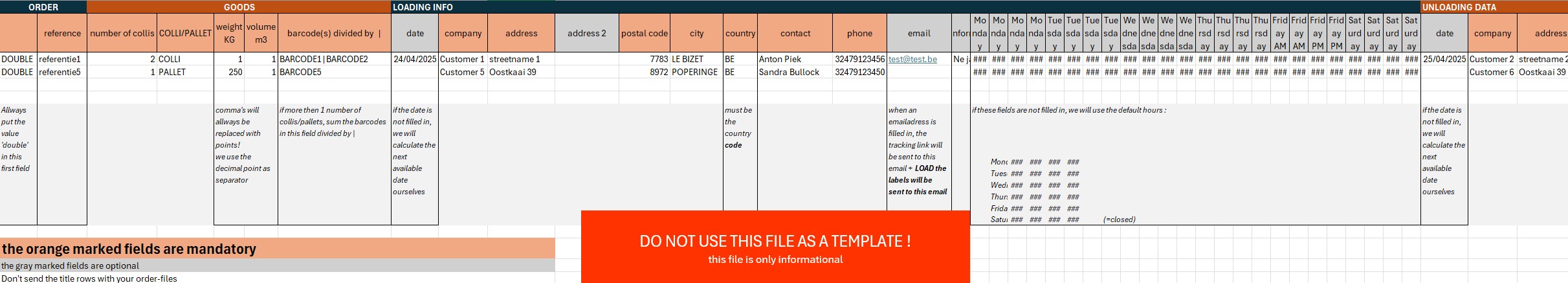 Met deze optie plaatst u een CSV-bestand op onze server waarin u zowel een OPHAAL- EN LEVERadres meegeeft.